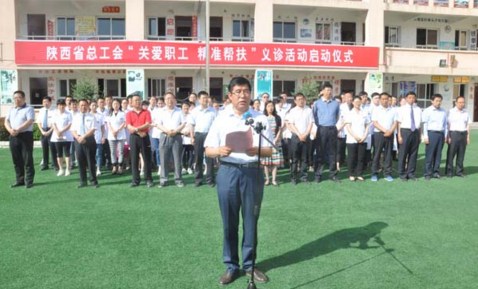 为贯彻落实党的群团工作会议精神,践行“关爱职工,精准帮扶”工作,由ob体育盘口 主办,省教育工会、延安大学附属医院联合举办的“关爱职工精准帮扶”义诊活动在我县朝阳中学成功举办,省委高教工委委员、统战部长李智军,省总工会党组成员、副主席丁立虎,宜川县政府副县长强永学,县政协副主席、宜川中学校长孙明贤出席义诊活动启动仪式,县总工会主席杨建忠主持启动仪式。