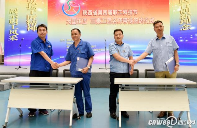 在开幕式上,张新停等5位大国工匠与5位青年技术工人代表签订名师带徒协议书。从本届职工科技节开始,将在全省范围开展名师带徒活动,并评选表彰百名陕西带徒名师,鼓励荣获全国、省、市、行业的技术能手、大国工匠、三秦工匠跨行业、跨地域带徒弟,每人不少于三名。