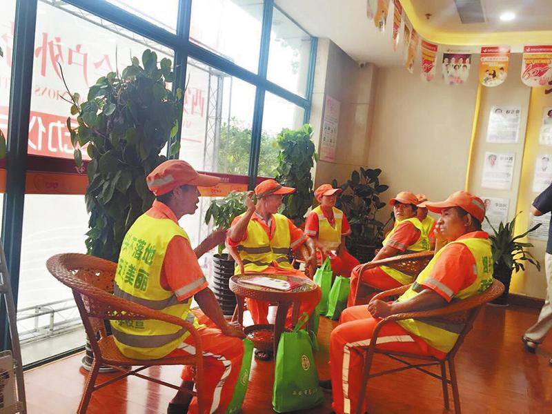 环卫工在爱心驿站休息 记者 张艳芳 摄