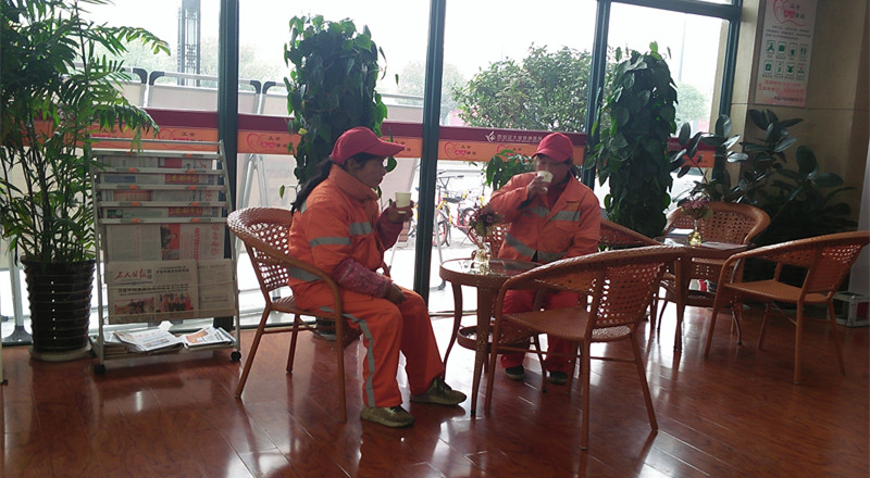 在新城广场当保洁员的李师傅高兴地说,“工会建的爱心驿站环境好、设施全,以后累了、渴了,就可以轻松、自在地进去,无拘无束的放心使用,这就是我们的‘家’”。