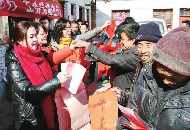 “年货准备好了吗?家人还好吧”“都好都好,差不多了”“过完节去打工有信心吗?”“当然有,别人行我也不会掉链子”……一袋面、一桶油、一副对联,虽然不能诠释工会组织和劳模对“亲人们”的牵挂,但一问一答间的温暖,瞬间让这个小山村暖意融融。