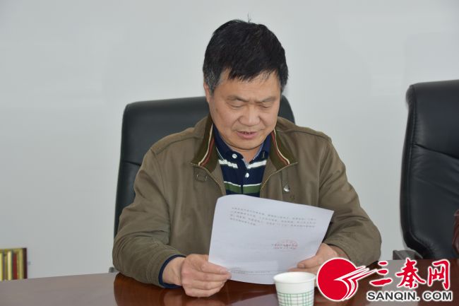 洋县总工会副主席贺永刚宣读决定