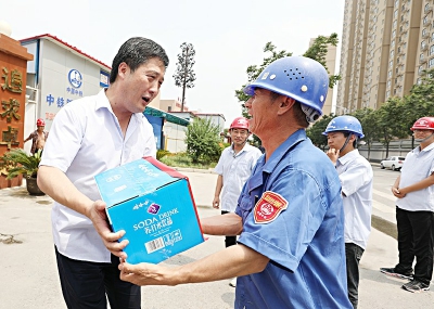8月4日,西安市灞桥区总工会在西安地铁9号线3标工地开展“关爱职工夏送清凉”活动,送来王老吉、苏打水、花露水、毛巾等防暑降温用品,慰问奋战在施工一线的建设者。