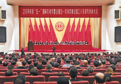 4月23日,2019年庆祝“五一”国际劳动节暨全国五一劳动奖和全国工人先锋号表彰大会在北京人民大会堂举行。
