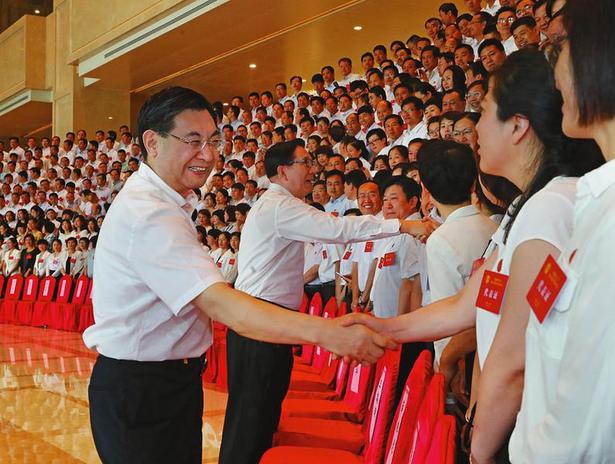 8月27日,陕西省工会第十四次代表大会在西安开幕。会前,省委书记胡和平,全国总工会党组书记、副主席李玉赋会见与会代表。记者宋红梅摄