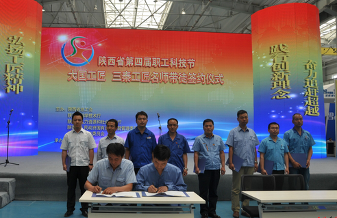 在启动仪式上,大国工匠、三秦工匠代表张新停、杨峰、李晓佳等5人与5位青年技术工人代表签订了名师带徒协议书;与会领导为参加“一带一路行“系列活动的大国工匠、三秦工匠授旗。