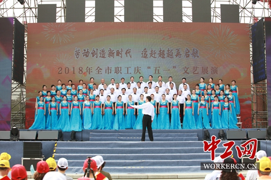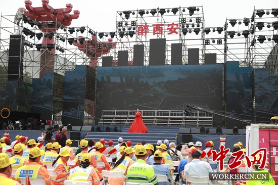 4月30日上午,西安市总工会在西安曲江唐人街开元广场举办“劳动创造新时代·追赶超越再启航”2018年全市职工“庆五一”文艺展演,庆祝“五一”劳动节。来自西安市的省、市级劳动模范、先进工作者以及一线职工代表共500余人一同观看了演出。